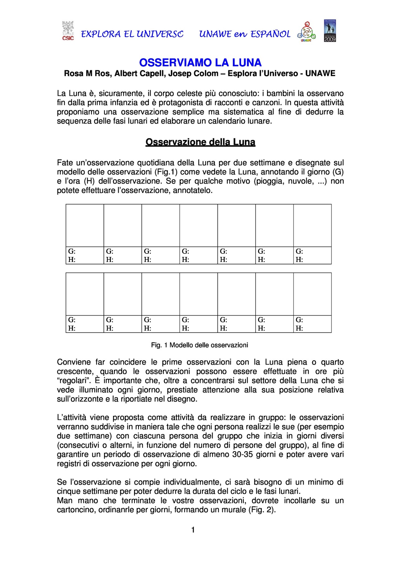 Osserviamo la luna è un'attività di Unawe Spagna.