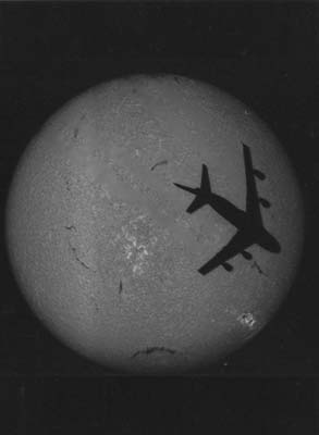 Forse non ci crederete, ma quello che vedete nella figura è un aereo che passava per caso davanti al Sole proprio mentre gli astronomi dell'Osservatorio di Arcetri (Firenze)lo stavano guardando!