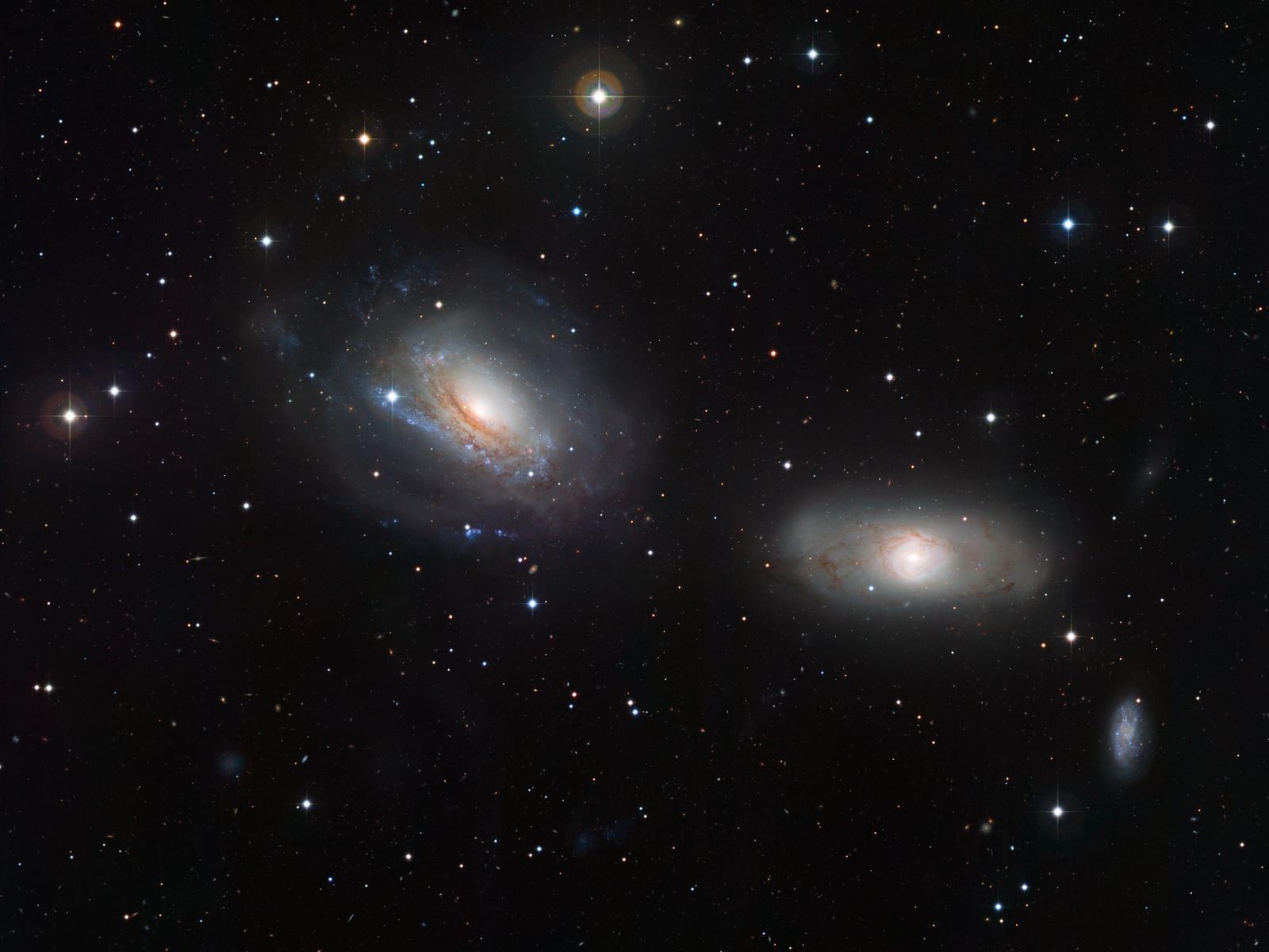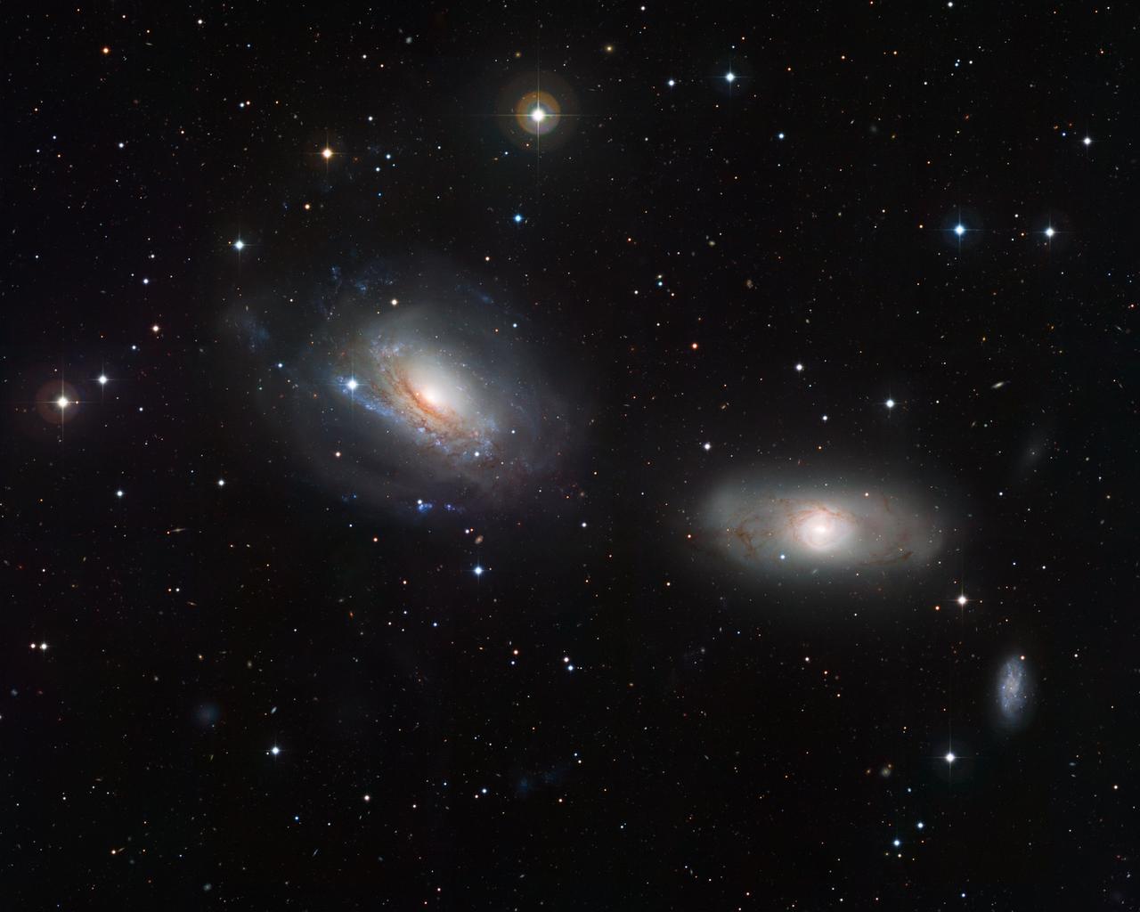 Nell’Universo, le galassie stanno di solito ben lontane l’una dall’altra. Per esempio, bisognerebbe allineare 25 galassie grandi come la nostra, la Via Lattea, prima di raggiungere la galassia più vicina a noi, la Galassia di Andromeda. Le galassie più grandi in questa nuova bellissima fotografia, però, sono molto vicine fra loro – lo spazio che le separa è circa metà delle dimensioni della nostra Via Lattea!