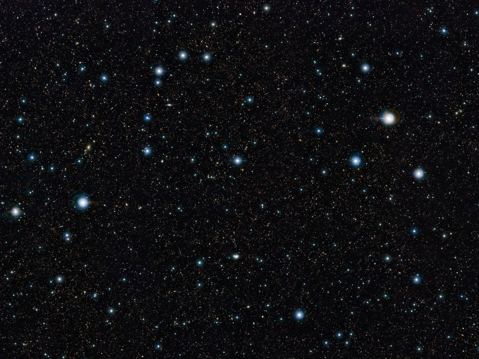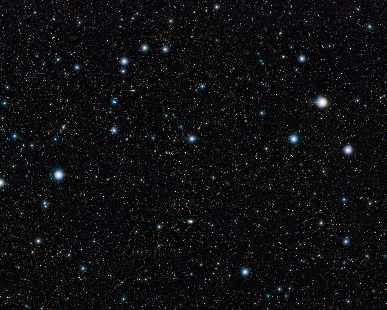 A prima vista questa fotografia dello spazio non sembra tanto speciale: soltanto qualche stella brillante e una spolverata di stelline meno luminose. Ma in realtà quasi tutti quegli oggetti più deboli non sono stelle della nostra galassia, la Via Lattea. Sono invece galassie lontanissime, ognuna delle quali contiene miliardi di stelle!