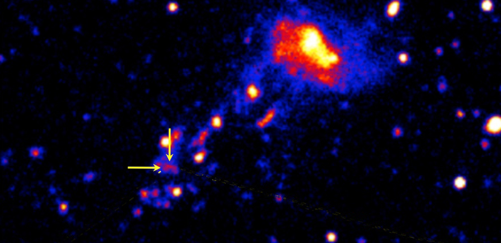 Nella nostra Via Lattea - la galassia in cui viviamo - le stelle nascono in un posto riparato, circondate e protette da soffici, calme nubi di gas. Ma c’è una piccola galassia lontana lontana, a 55 milioni di anni luce di distanza da noi, in cui la situazione è molto diversa! Questa galassia nana sta volando attraverso un gruppo di galassie alla velocità pazzesca di 1000 chilometri al secondo. Nella corsa, si lascia dietro una lunga scia di gas, dove le condizioni sono decisamente estreme, altro che nella nostra tranquilla Via Lattea. Le temperature raggiungono un milione di gradi, e furiosi cicloni di vento soffiano a gran velocità, a 4 milioni di chilometri orari.