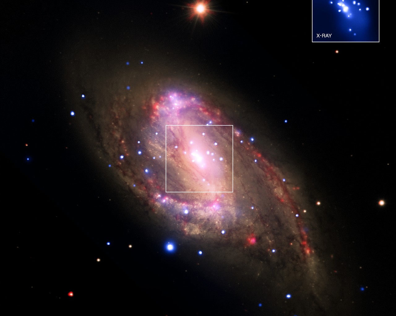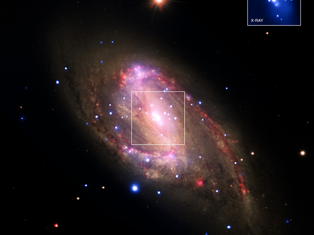 La bella galassia di questa foto spaziale fa parte di un sistema di tre galassie tenute insieme dalla gravità, che si chiama “Tripletta del Leone”. La sua forma perfetta di spirale è stata distrutta dalle due vicine. Vedi com'è allungata sul lato destro? Lo è perché le tre galassie non fanno che tirarsi l’una verso l’altra.