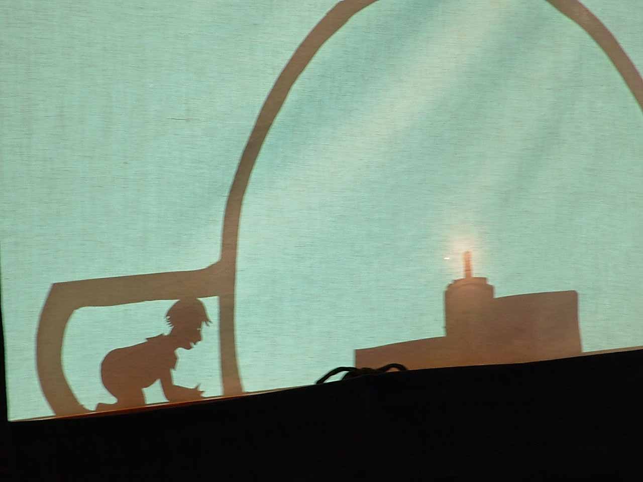 Per spiegare a bambini e bambine come funziona il planetario, il burattinaio Mariano dolci ha realizzato una sagoma da usare in un piccolo teataro d'ombra. In questo modo i bambini e le bambini capiscono divertendosi a quale avventura stanno per partecipare.